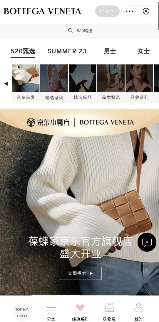 京东还将为Bottega Veneta提供全方位的运营与营销资源支持,借助重要零售节点与新品发布等契机,通过京东小魔方、京东奢品等特色营销资源,推动品牌与用户展开多样化的互动,挖掘更多潜在消费者。例如,Bottega Veneta入选京东小魔方年度新店新品计划,京东小魔方与品牌一同筹划了520开业盛典及在站内外联合推广新品。